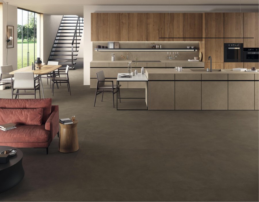 Sàn bếp, đảo bếp, tường bếp, vách bếp khi sử dụng giải pháp ốp lát từ gạch Boost Natural với gam màu lặng sẽ làm tăng cảm hứng nấu nướng cho người làm bếp, đồng thời mang lại cảm giác dễ chịu, thoải mái cho gia đình khi dùng bữa