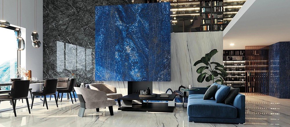 Phòng khách kết nối không gian sinh hoạt chung hiện đang là xu hướng được nhiều kiến trúc sư lựa chọn để tư vấn cho gia chủ. Việc lên ý tưởng thiết kế liền kề hai không gian chung này không chỉ giúp không gian mở rộng, không chia nhỏ khi bị ngăn cách mà còn tạo được điểm nhấn ấn tượng ở các mảng lớn như gạch khổ lớn vân đối xứng, hiệu ứng nối vân, gạch xuyên sáng … cho không gian lớn.