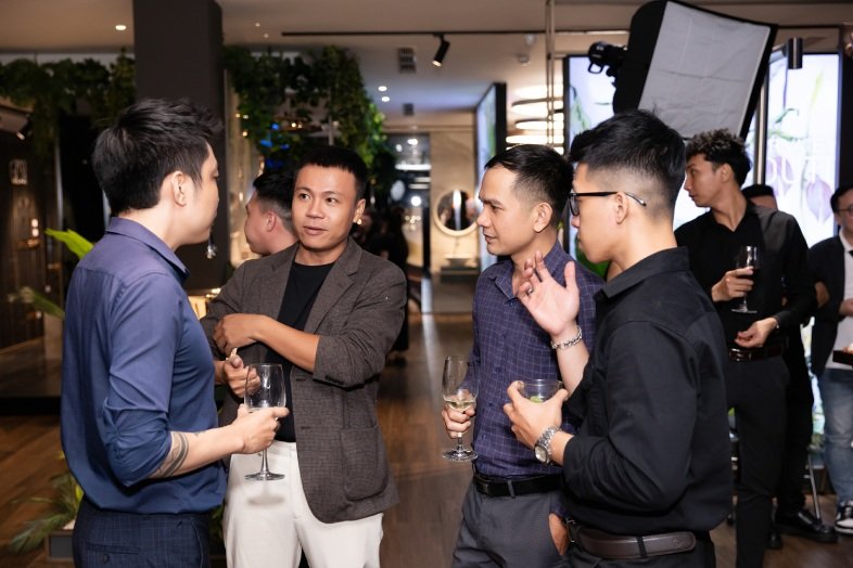 Sự kiện được điểm thêm phần thi vị với tiệc nhẹ, nhạc acoustic và rượu vang. Các khách mời đã có thời gian giao lưu, kết nối, thư giãn và khám phá các sản phẩm độc đáo được trưng bày tại showroom, tạo nên một buổi tối giao thoa giữa thiết kế – cảm xúc – trải nghiệm.