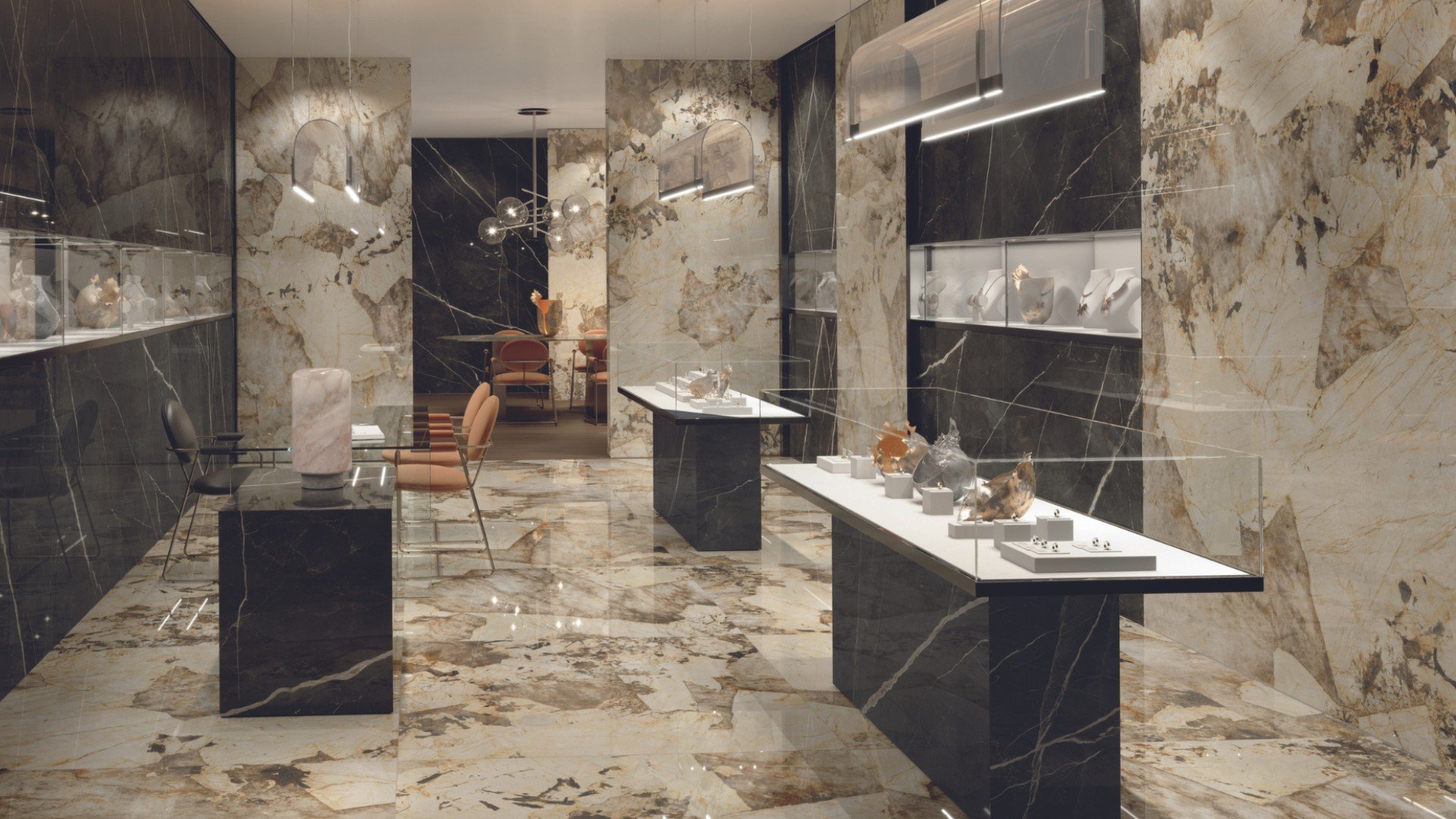 Đá marble Ý là di sản trường tồn trong thế giới kiến trúc nội thất và vẫn tiếp tục là một hệ tư tưởng mới cho thiết kế đương đại khi kết hợp cùng chất liệu porcelain, bứt phá nhiều giới hạn để trở thành một vật liệu thiết kế bền vững và sáng tạo.