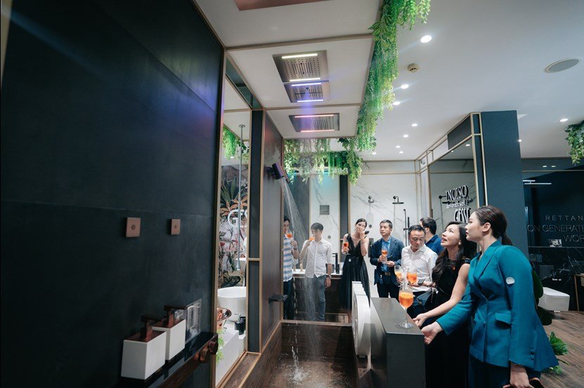 Đến với sự kiện, ngoài việc gặp gỡ và kết nối, các kiến trúc sư, chủ đầu tư còn được chiêm ngưỡng và trải nghiệm thực tế khu trưng bày thiết bị phòng tắm trang bị công nghệ tối tân như sen tắm kết hợp trị liệu dòng nước - ánh sáng, bồn tắm thư giãn với nhiều chế độ massage, bồn cầu thông minh…