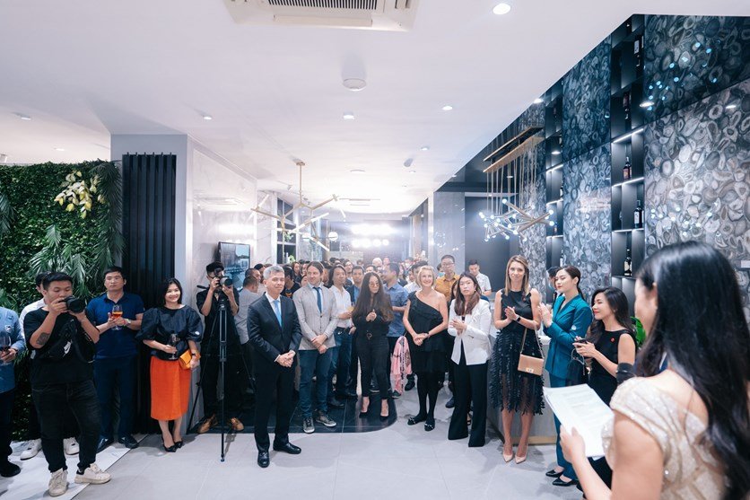 Đêm tiệc khai trương có sự góp mặt của Ông Francesco Arcuri - Tham tán thương mại thuộc Đại sứ quán Ý, đại diện VIETCERAMICS cùng khách quý là các Kiến trúc sư đầu ngành tại Hà Nội.