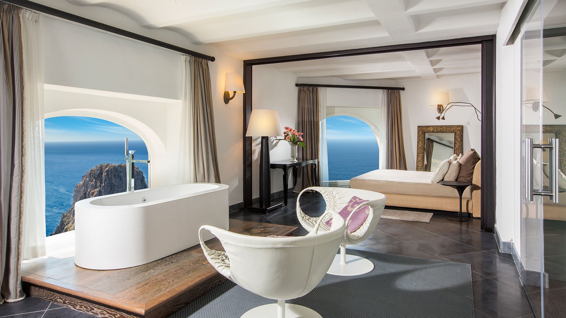 Sự sáng tạo trong thiết kế đến từ Gessi nâng cấp giá trị phòng tắm từ nơi đáp ứng các chức năng thuần túy, lên một tầm cao hơn là khu vực thư giãn và phục hồi năng lượng. Điều này đóng vai trò quan trọng trong việc thiết kế công năng của không gian. Thể hiện đúng tinh thần của triết lý trên, phòng tắm nguy nga tráng lệ của khách sạn Punta Tragara mở ra một không gian sống động bên trong với phong cách thiết kế tối tân, nhờ nét thẩm mỹ đa dạng của bộ sưu tập mang tính biểu tượng Gessi Rettangolo.