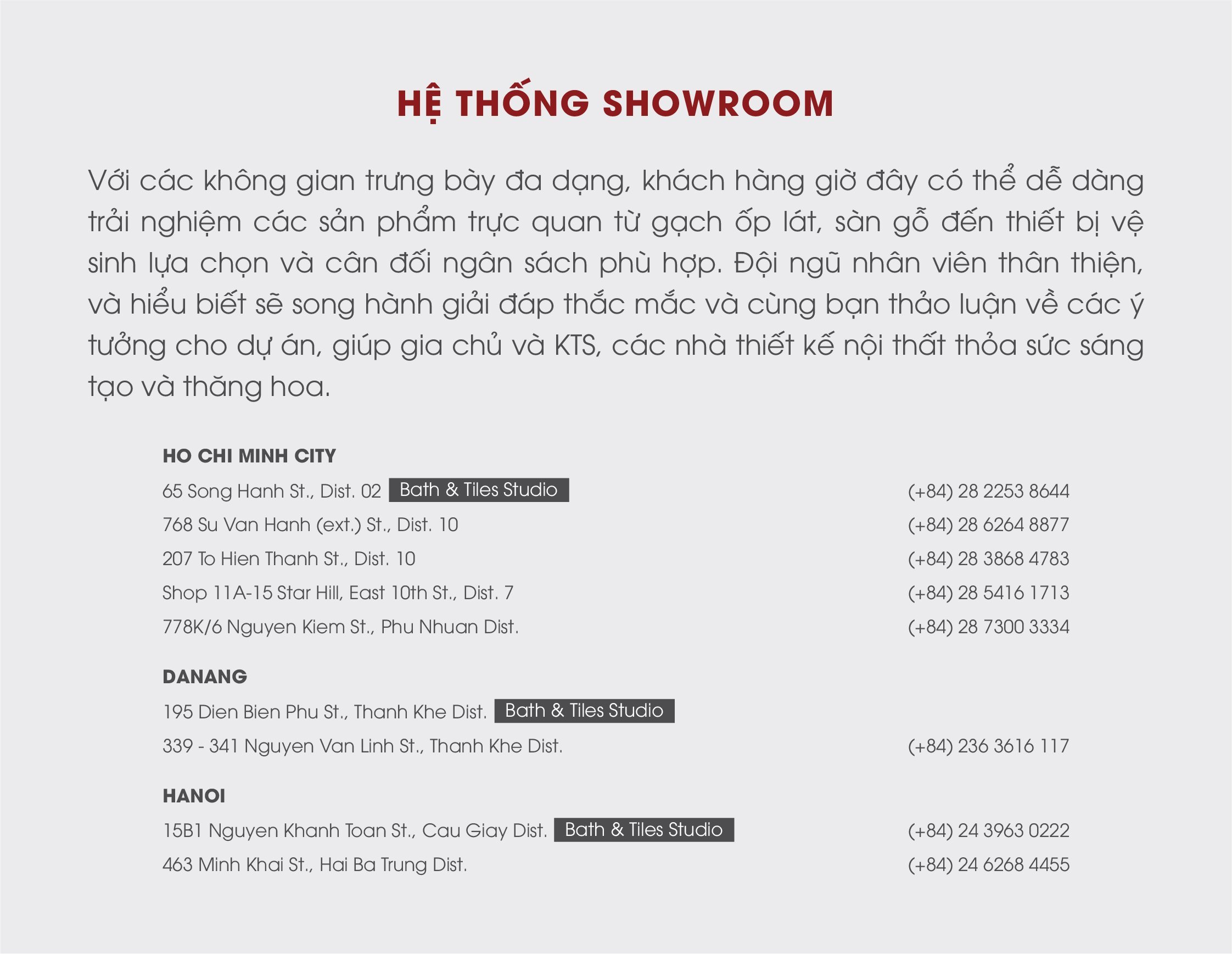 Bộ sưu tập Gessi độc quyền được giới thiệu tại các Showroom Bath & Tiles Studio của Vietceramics trên toàn quốc.