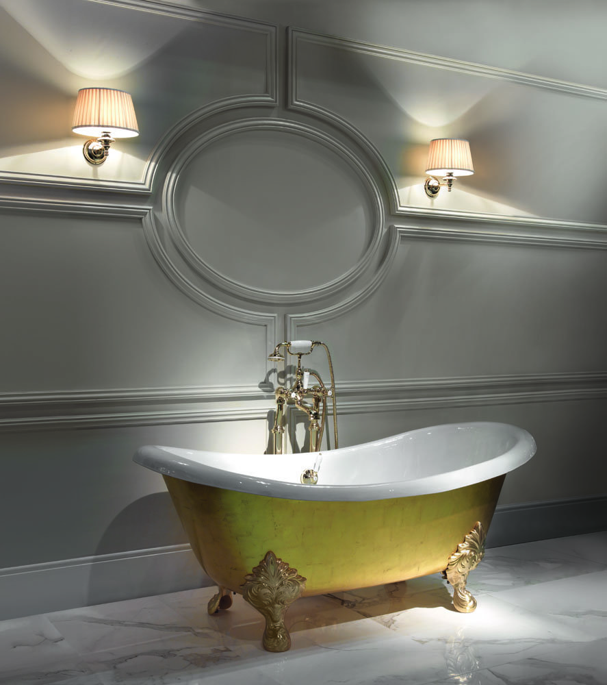 Đối với những gia chủ đang tìm kiếm một phong cách thời thượng, cổ điển, lịch sự và sang trọng, các thiết kế ấn tượng, truyền cảm hứng của chậu rửa mặt console Etoile truyền thống hoặc tuyệt tác bồn tắm dát vàng 24K – Mida với thiết kế chân bồn tắm được được chế tác thủ công với họa tiết lá tinh tế bởi các nghệ nhân từ thương hiệu phòng tắm cổ điển Devon & Devon (Florence, Ý).