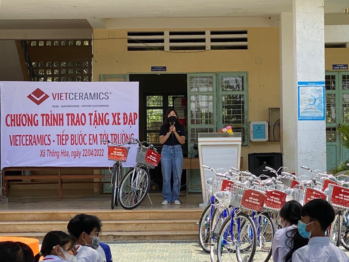 Tại buổi lễ trao tặng xe đạp tại Xã Thông Hòa, Tỉnh Trà Vinh, chị Trần Thị Luận - Trưởng phòng Nhân Sự công ty Vietceramics chia sẻ: "Tôi và đại gia đình Vietceramics hi vọng rằng một chút đóng góp nho nhỏ vẫn có thể giúp các con dễ dàng đến trường và cố gắng học thật giỏi để góp sức dựng xây quê hương mai sau."