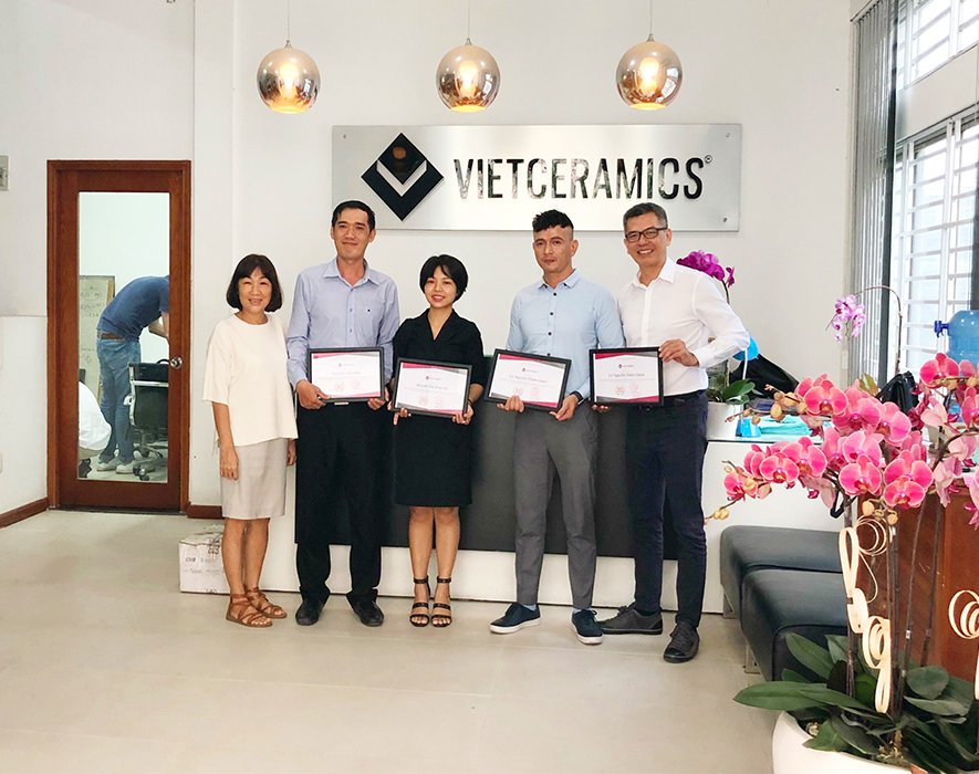 Thứ 4 vừa qua, buổi lễ vinh danh Nhân tài Kinh doanh tháng 8 & tháng 9 đã diễn ra tại văn phòng của Vietceramics (TP. Hồ Chí Minh), showroom Đà Nẵng và showroom Nguyễn Khánh Toàn (Hà Nội). Các anh chị nhân viên kinh doanh xuất sắc vui mừng nhận bằng khen từ Ban Gíam đốc của công ty. 10 “chiến binh” vinh dự được trao giải đến từ 3 khu vực: